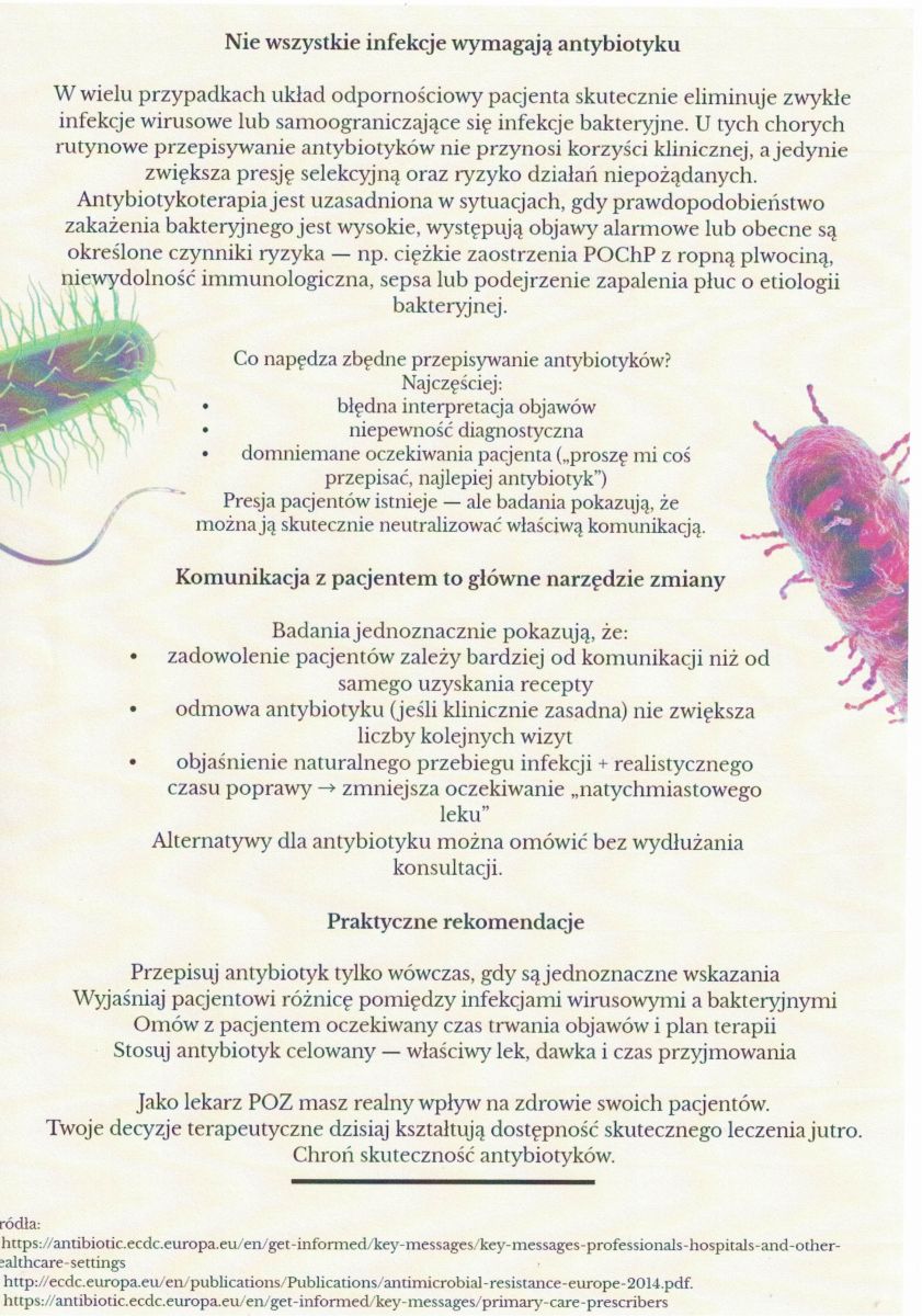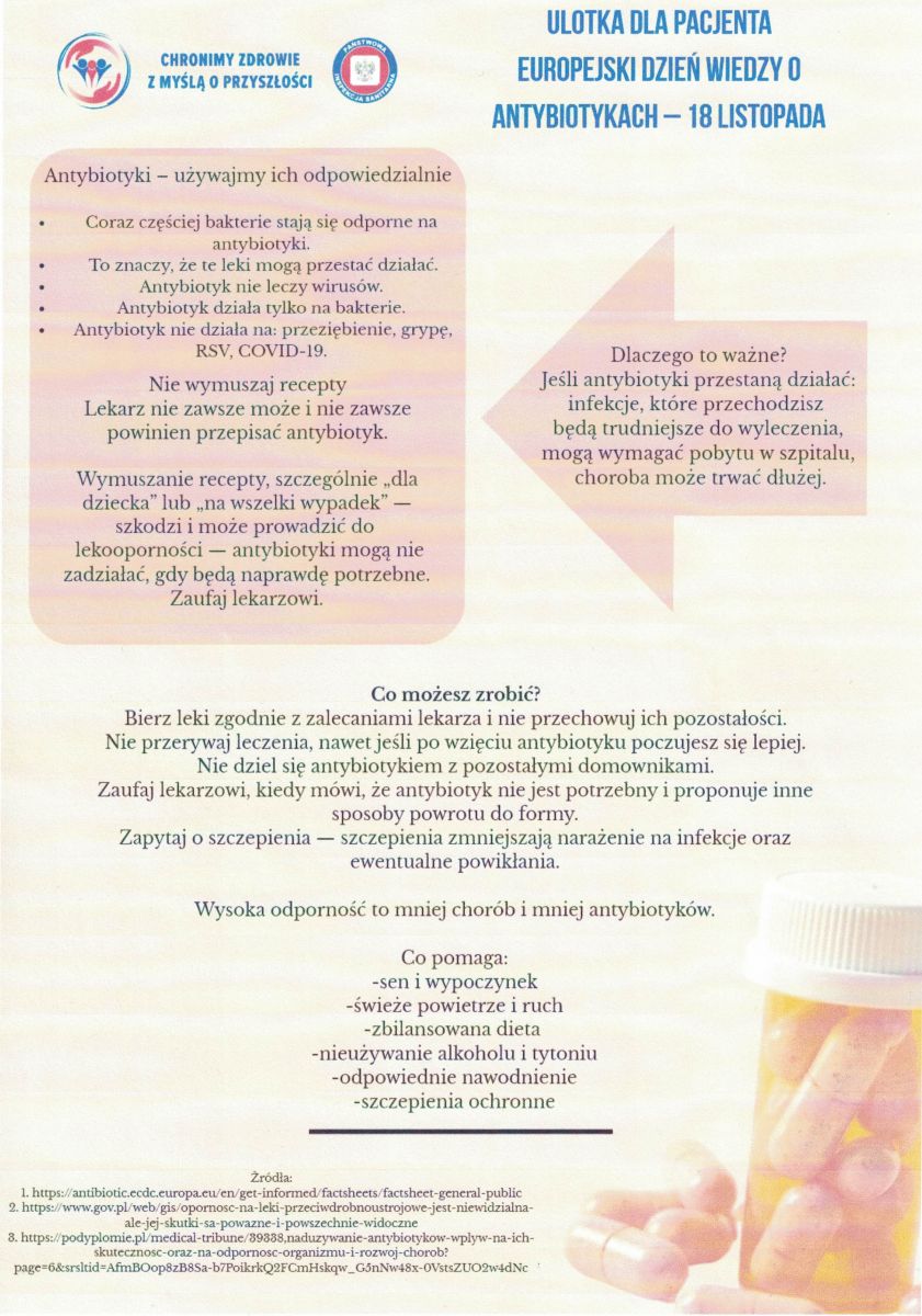Ulotka dot. wiedzy o antybiotykach